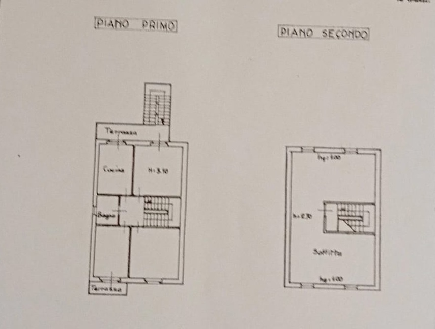 - al primo piano troviamo il secondo appartamento composto da cucina abitabile, soggiorno, disimpegno centrale, bagno finestrato, camera matrimoniale, camera singola e due terrazzi.