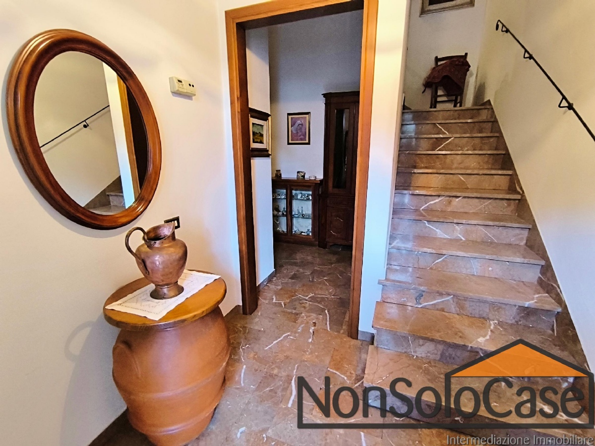 Al primo piano l'altra abitazione composta da zona giorno con cucina a vista e caminetto, due camere da letto, servizio igienico finestrato e due terrazzi. Da una scala interna sia accede all'ampia soffitta.