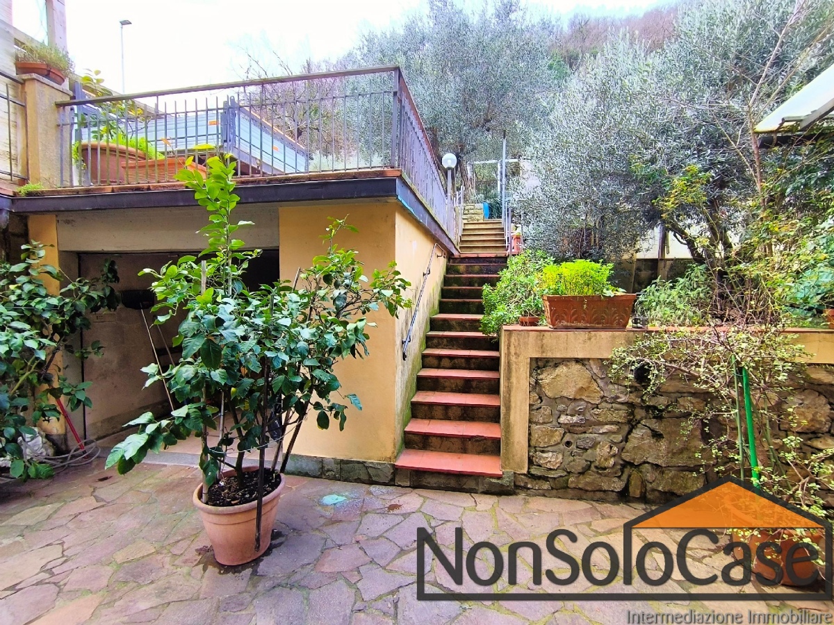 Completano la proprietà un garage, un posto auto e un giardino in parte terrazzato che circonda l'immobile su tutti i lati.