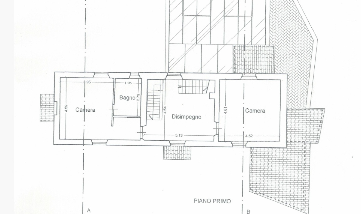 Al primo piano la zona notte con un grande disimpegno, due camere matrimoniali entrambe con servizio igienico privato.