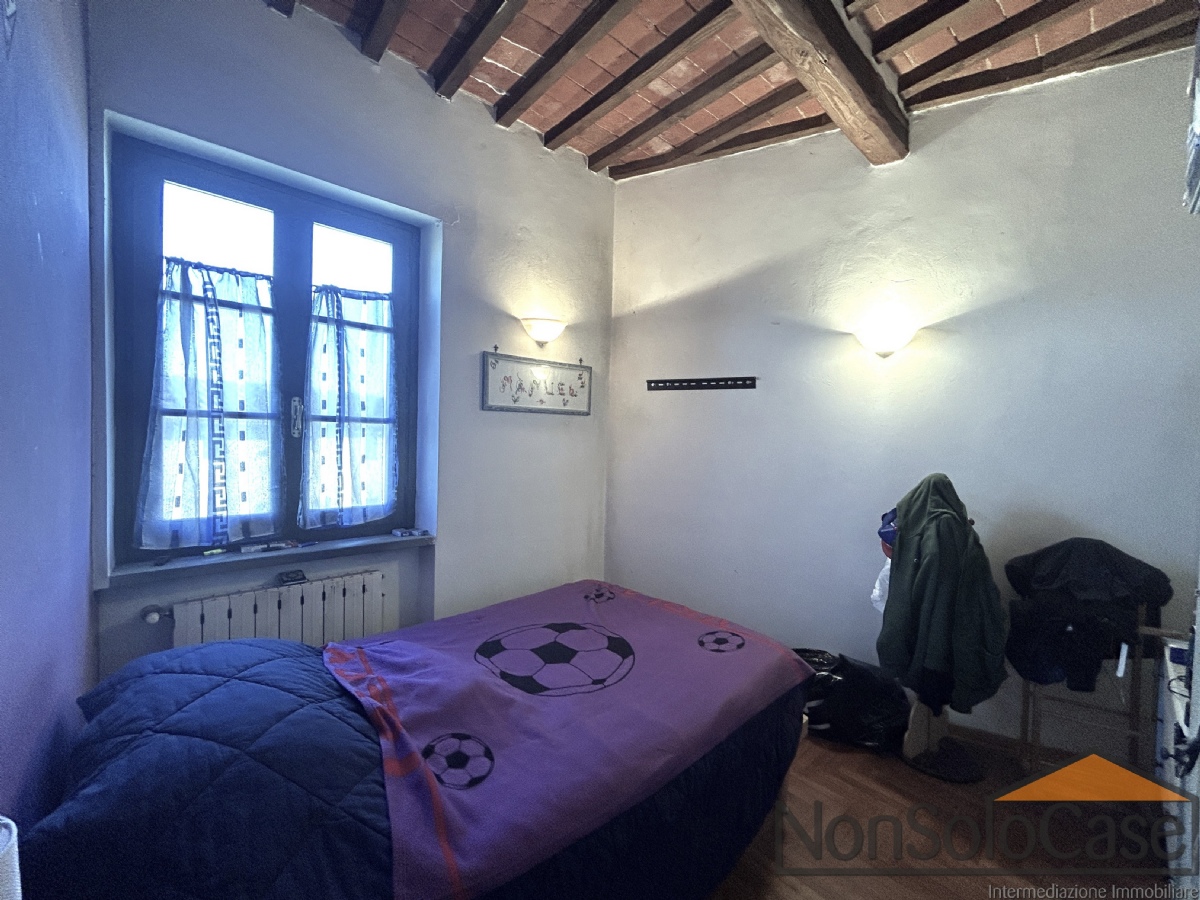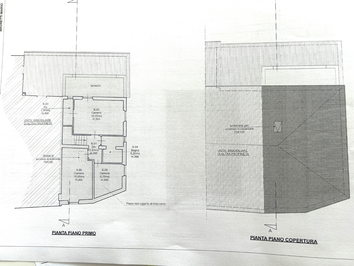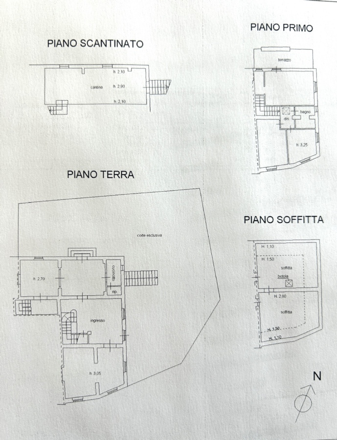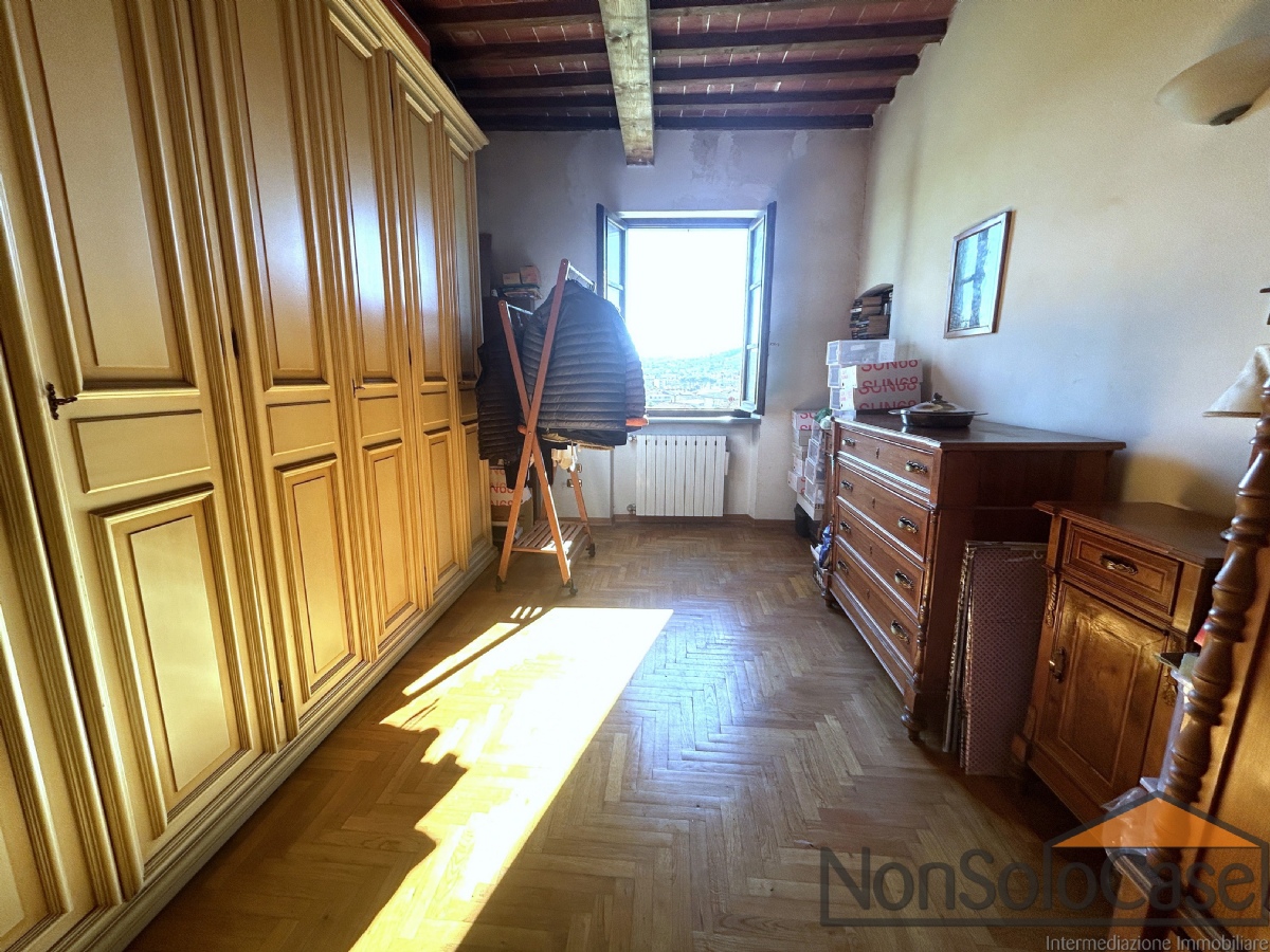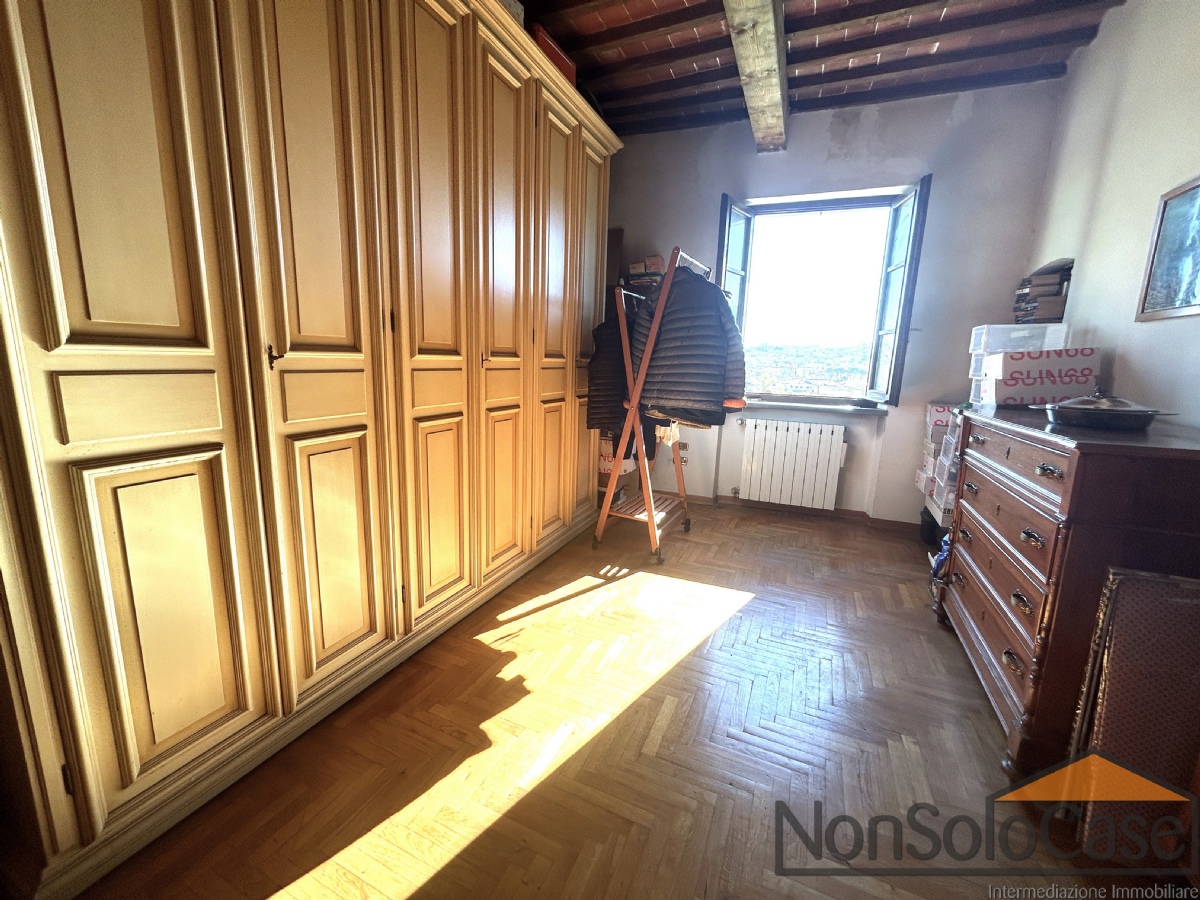 Al piano primo si trovano le 3 camere da letto di cui una con bagno esclusivo, dalla quale si accede a un grande terrazzo di 12 mq e un bagno con vasca e finestra; all'ultimo piano c'è la soffitta accessibile da una scala retrattile, in gran parte vivibile con altezze fino a 2,80 m, attualmente a grezzo.