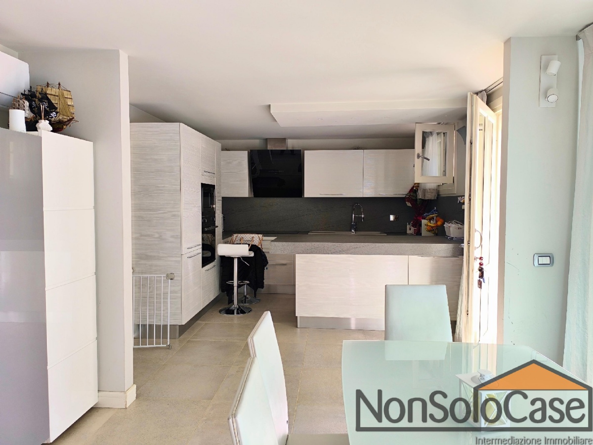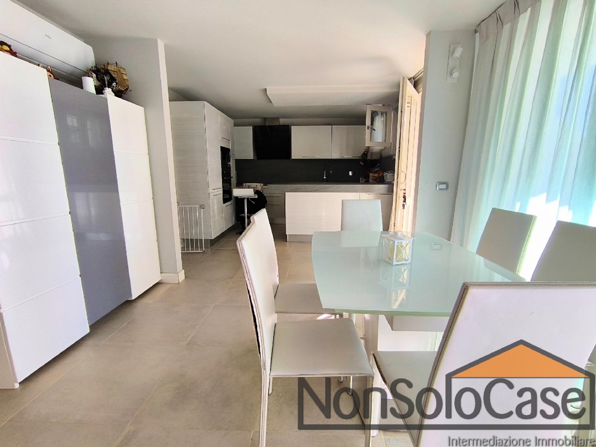 Al piano seminterrato, quasi completamente fuori terra, si trova la taverna accessibile dal resede esterno composta da zona soggiorno, cucina a vista con penisola, bagno, lavanderia con vano tecnico e ripostigli.