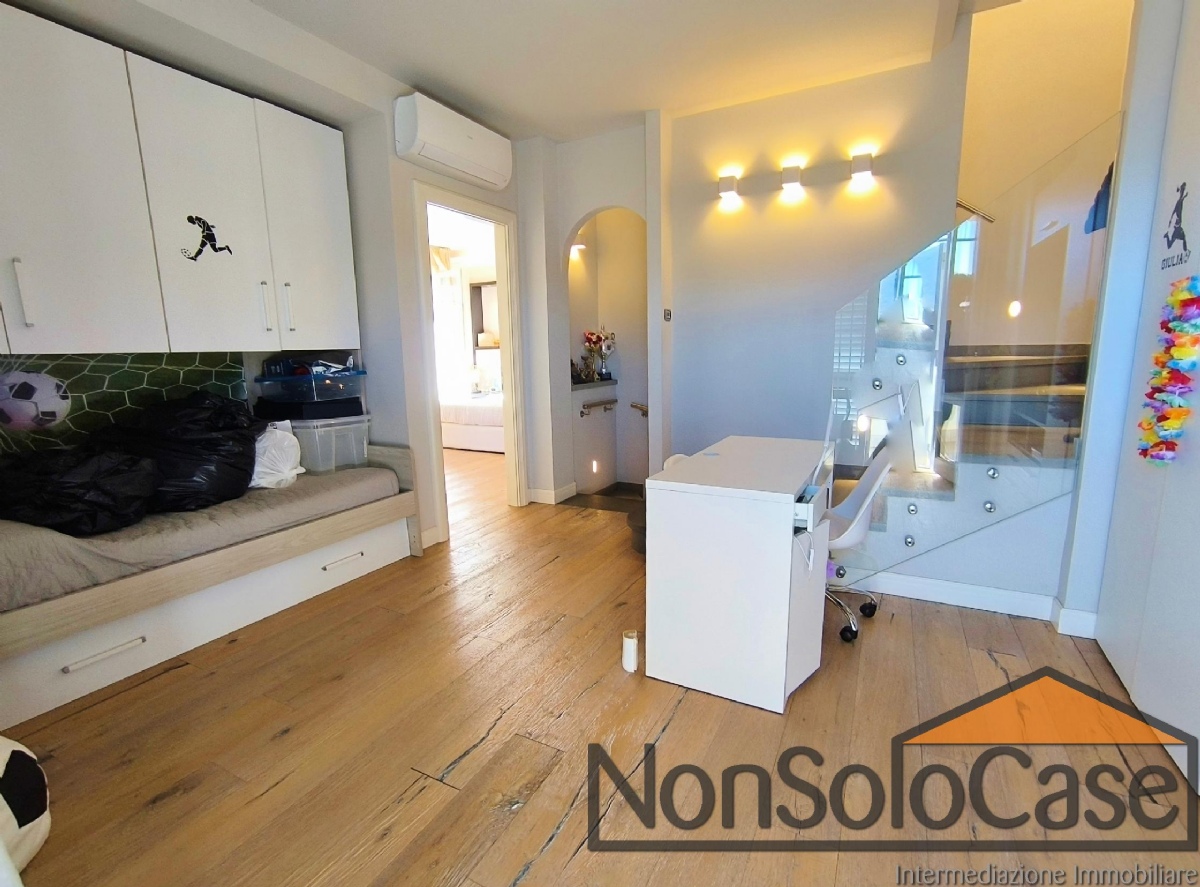 Salendo al piano primo abbiamo altre due camere da letto entrambe con cabina armadio, e due servizi di cui uno privato.
